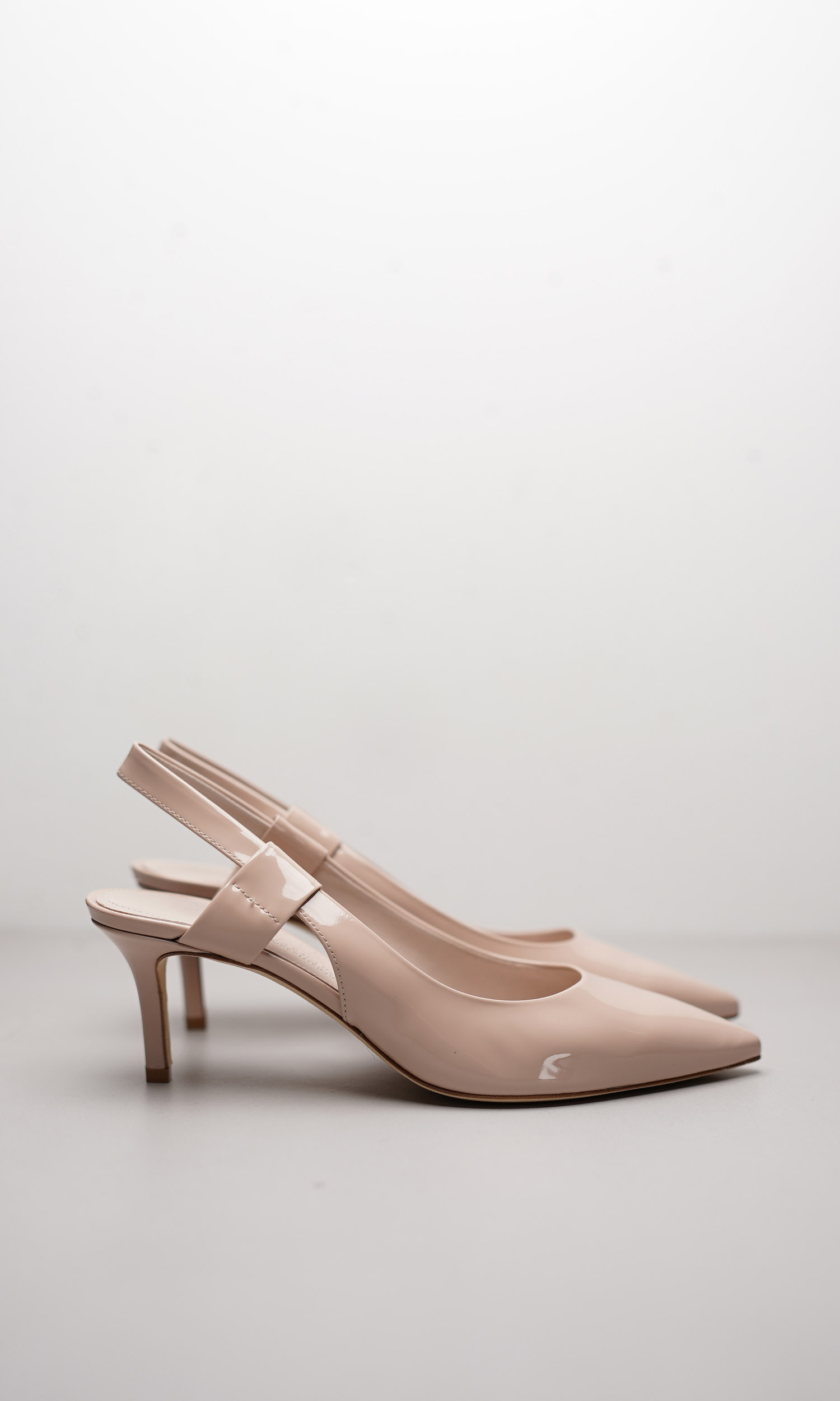 Die klassischen Slingback-Pumps ROME überzeugen in dieser Saison mit einem seitlichen Riemchen. Nudefarbenes Lackleder sorgt für einen edlen Auftritt. Die Kombination aus einem 65 mm hohen Absatz und einem schmalen Fersenriemen sorgt für besten Tragekomfort und ein angenehmes Laufgefühl.