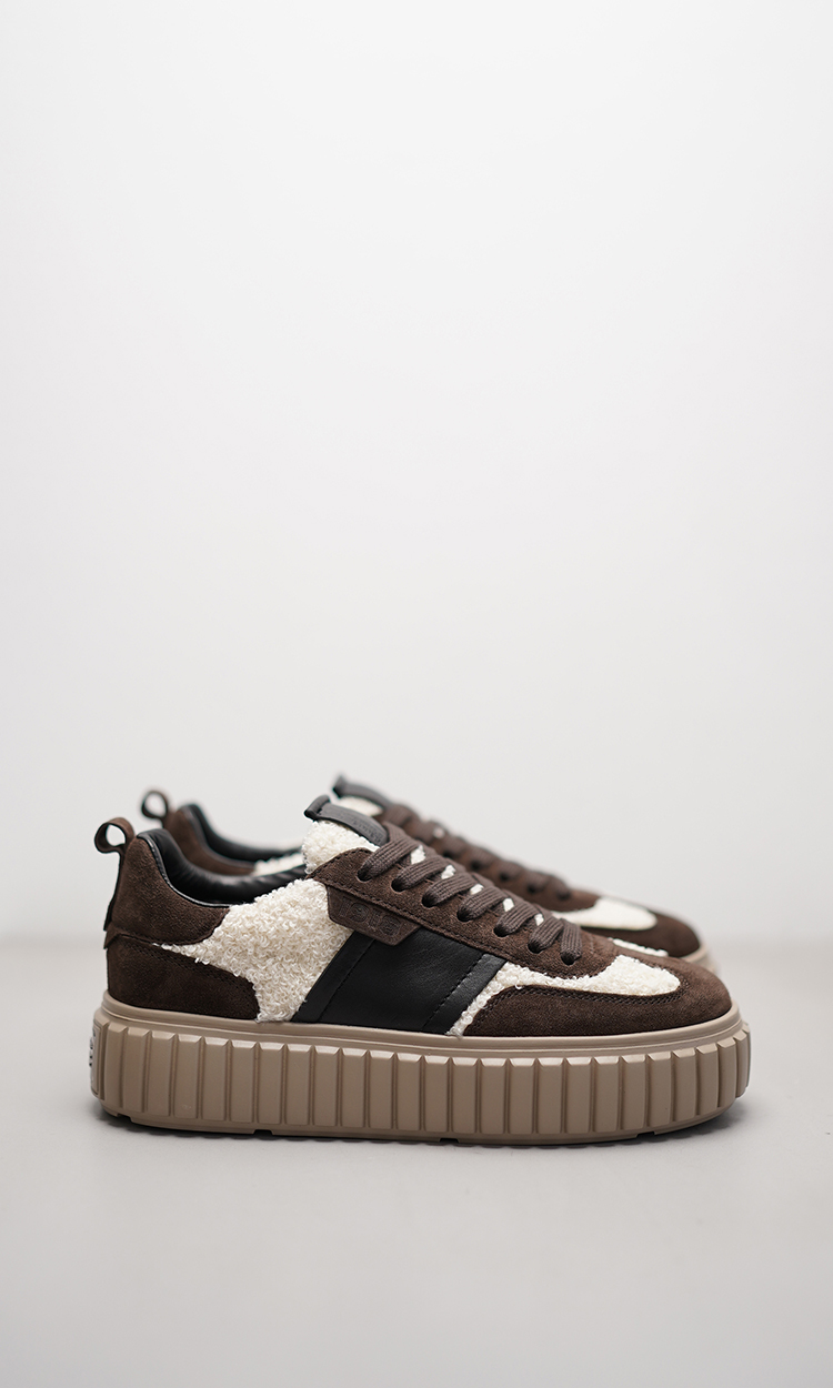 Dieser ZAP Sneaker überzeugt durch eine edle Kombination aus hochwertigen Materialien und einem modernen Design. Der stilvolle Mix aus naturfarbener Wolle, dunkelbraunem Veloursleder und schwarzem Nappaleder verleiht dem Schuh eine ausdrucksstarke Optik mit feinen Kontrasten und einer besonderen Haptik. Die hellbraune Sohle rundet das Design harmonisch ab und sorgt gleichzeitig für ein angenehmes Laufgefühl. Ob lässig zur Jeans oder als stilvoller Akzent zum Business-Casual-Look – dieser Sneaker vereint Modebewusstsein mit handwerklicher Qualität.