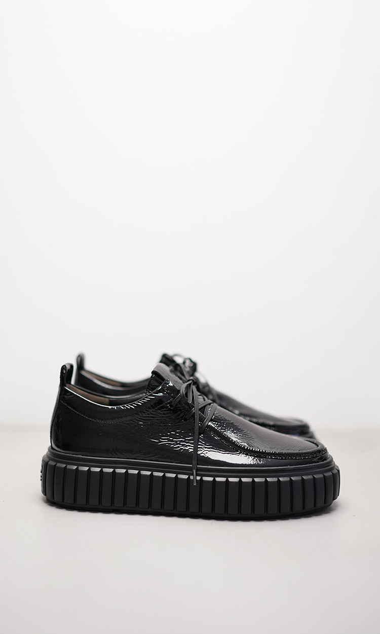 Klassik trifft auf Contemporary Chic: Dieser elegante Halbschuh-Schnürer ZAP vereint zeitlose Form mit modernem Glanz. Gefertigt aus weichem, schwarzem Lackleder, besticht das Modell durch seinen edlen Schimmer und seine geschmeidige Haptik. Die tonige Plateausohle in Schwarz verleiht dem Schuh einen urbanen Twist, während die klassische Schnürung dem Design Struktur und Tiefe gibt. Ein vielseitiger Begleiter, der Eleganz mit Alltagstauglichkeit verbindet – präzise gearbeitet, komfortabel und kompromisslos modern.