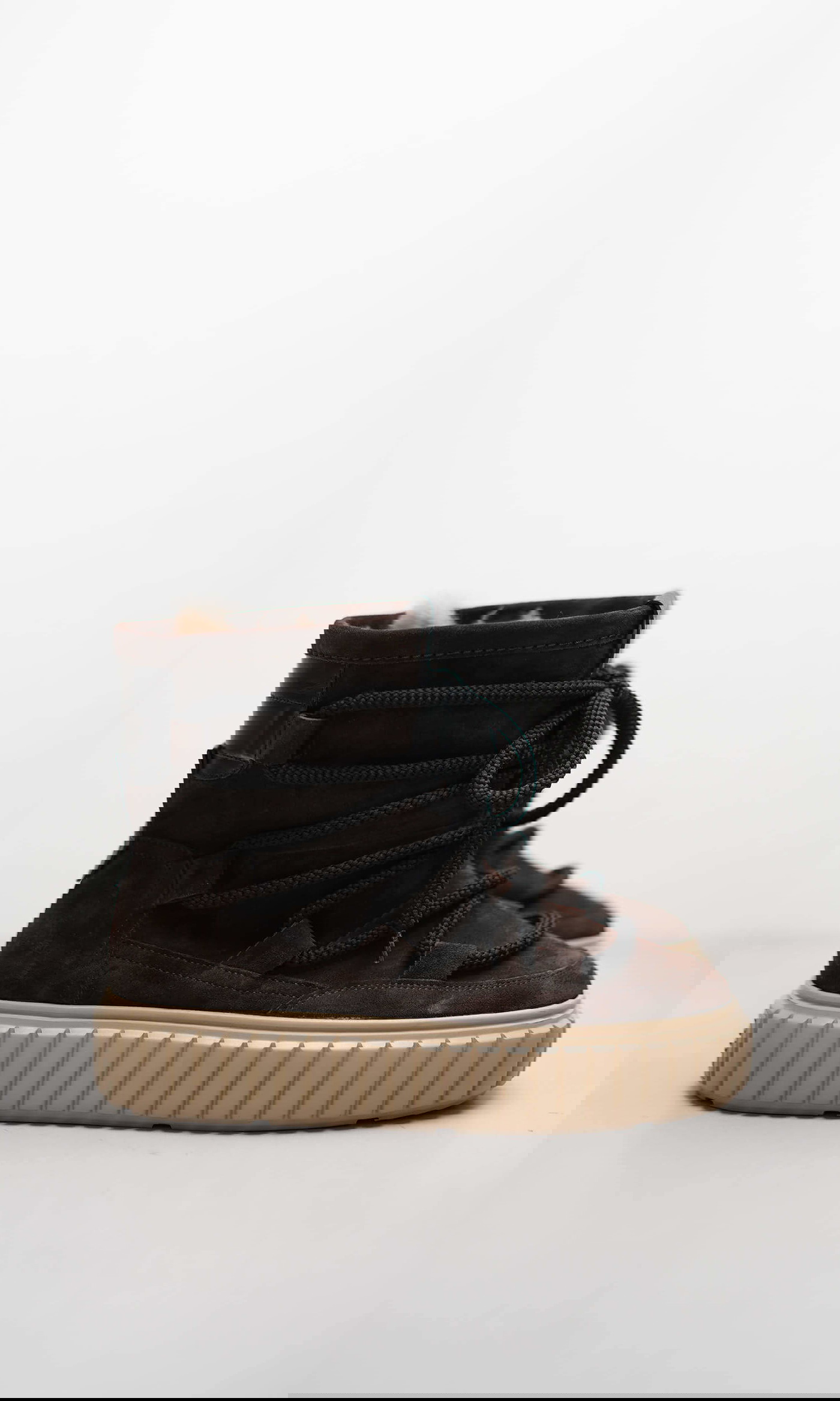 Kuschelig, modern und stilvoll durch den Winter: Dieser ZAP Bootie kombiniert lässigen Komfort mit natürlicher Eleganz. Gefertigt aus weichem dunkelbraunem Veloursleder und ausgestattet mit einem naturfarbenen Lammfellfutter, bietet er angenehme Wärme und ein luxuriöses Tragegefühl. Die markante, aber harmonische Silhouette wird durch die hellbraune Sneakersohle abgerundet, die für einen modernen Look und bequemen Halt im Alltag sorgt. Ein Bootie, der sich mühelos zu urbanen Casual-Outfits kombinieren lässt.